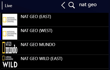 Here’s a snapshot of what displays when you search the Cue Streaming TV Guide under all channels for Nat Geo: