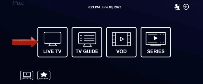 Step #2 – On the blue screen that loads up, click on the Live TV button on the left: